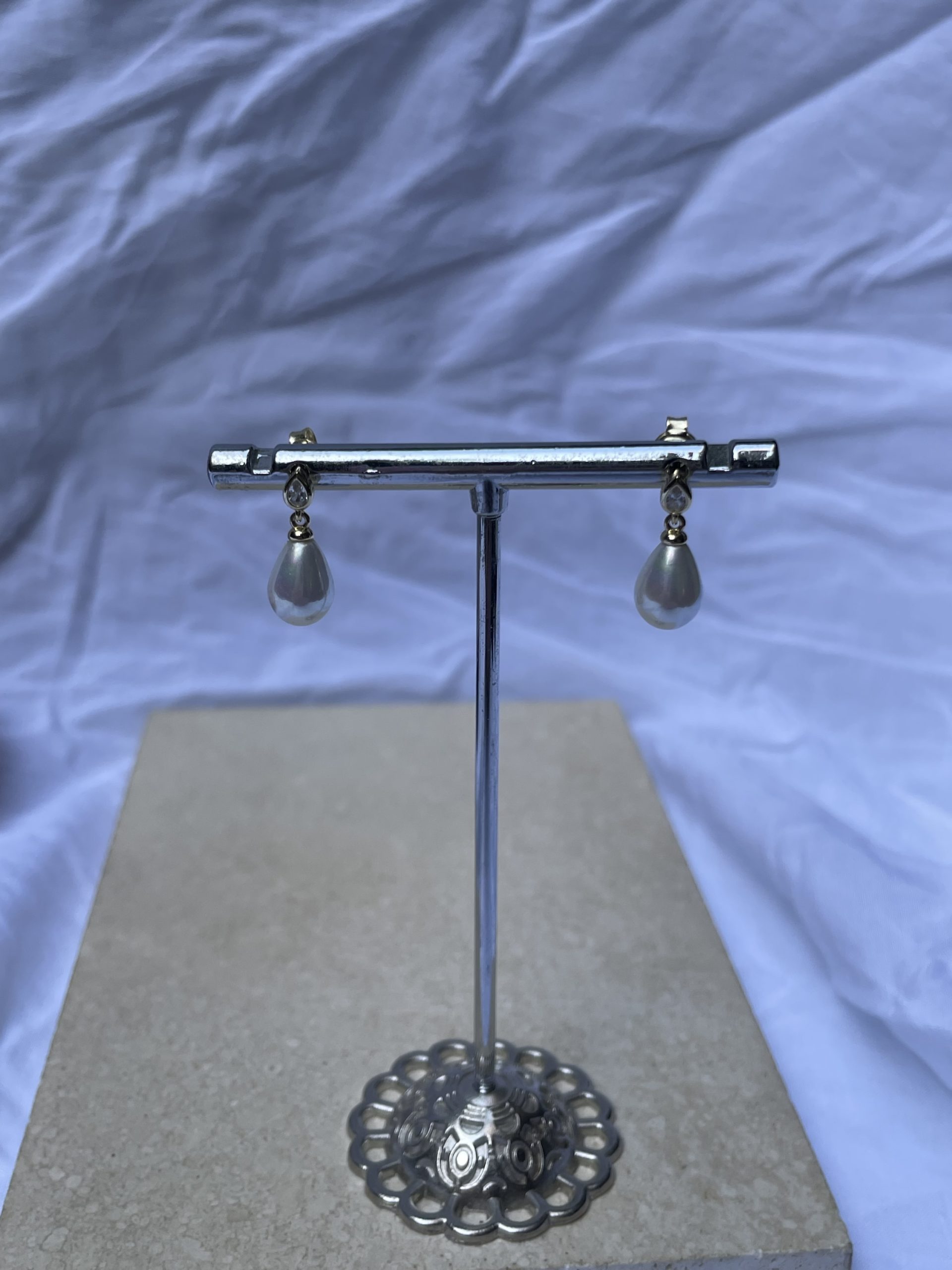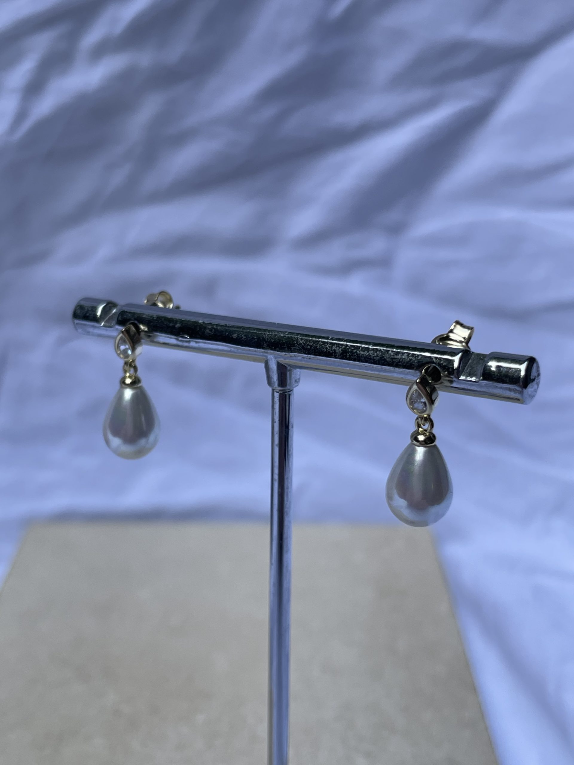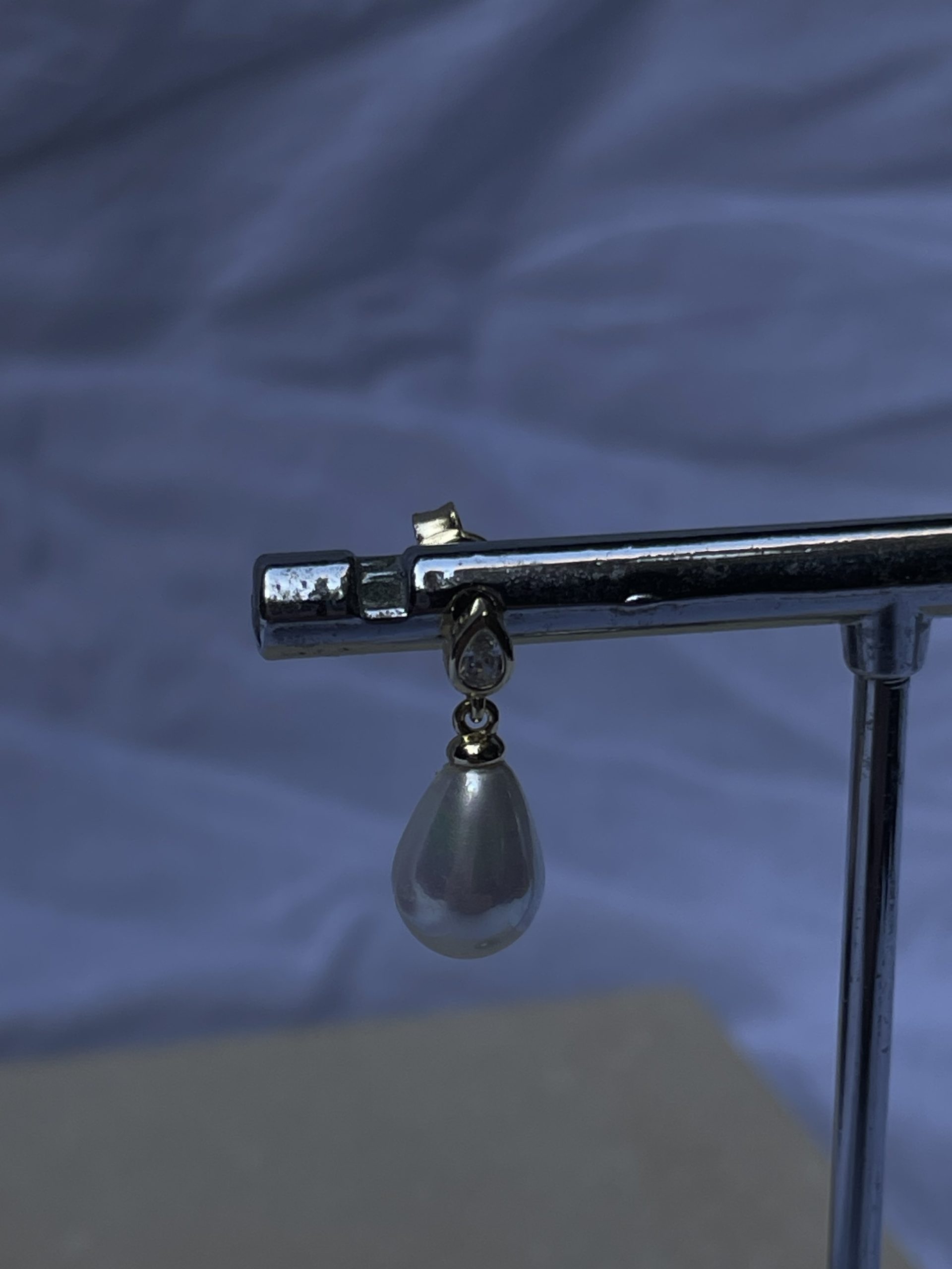 עגילים צמודים שמורכבים מזירקון ועליו תלויה פנינה בצורת טיפה 🍋‍🟩