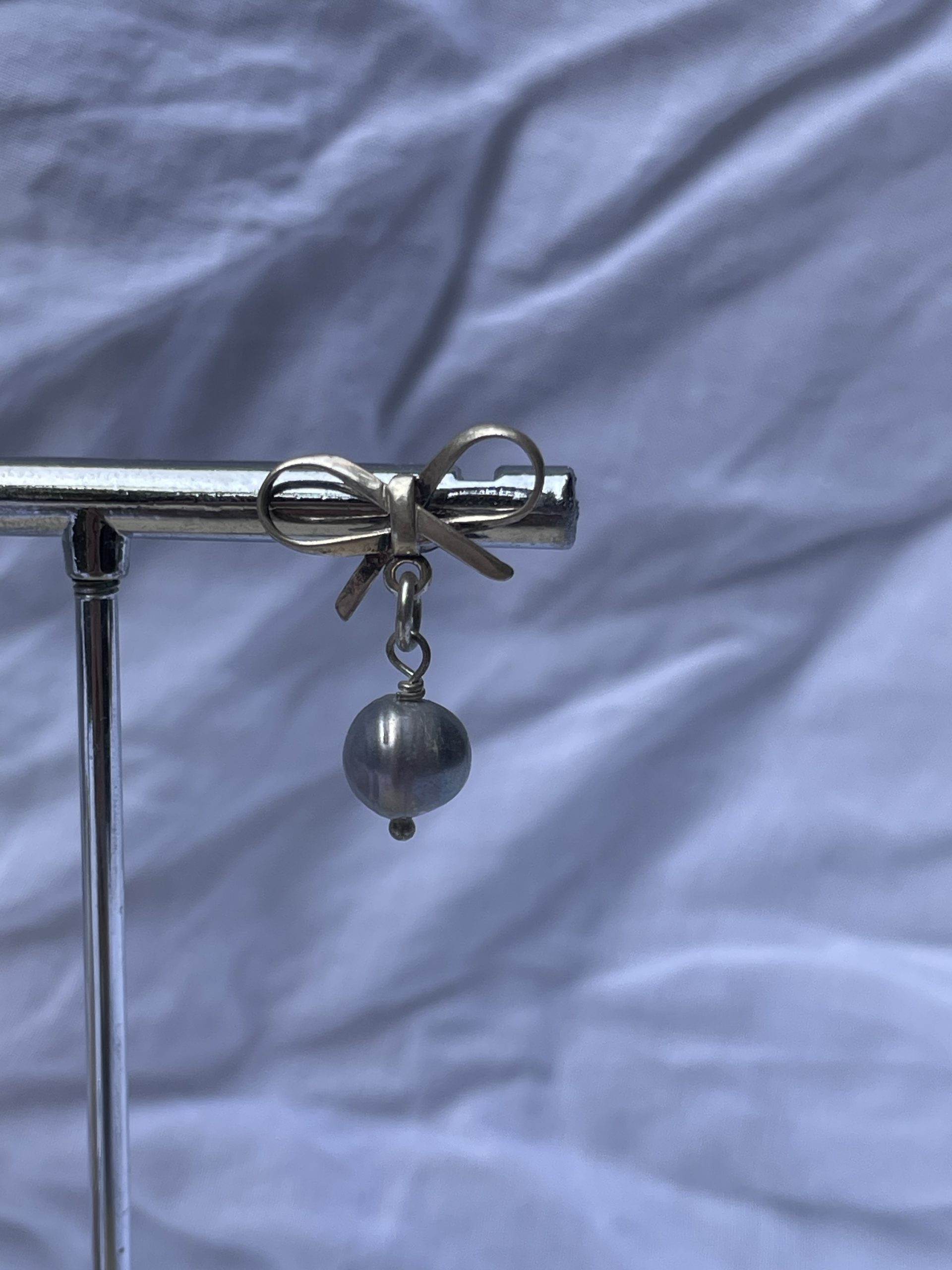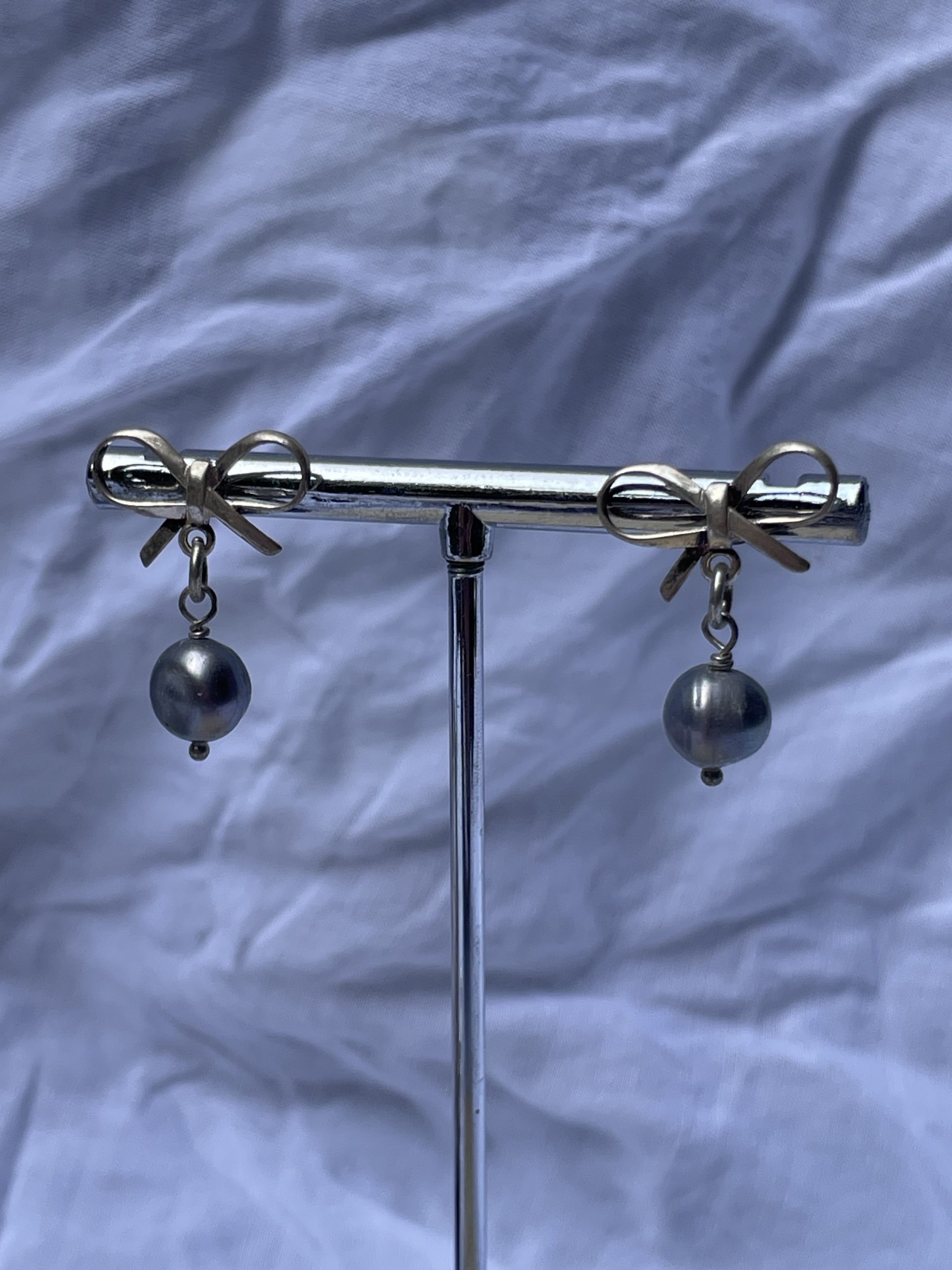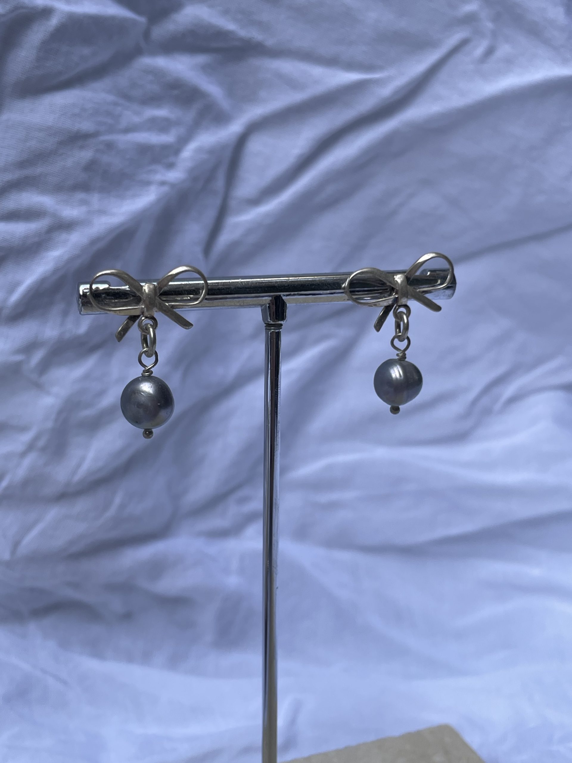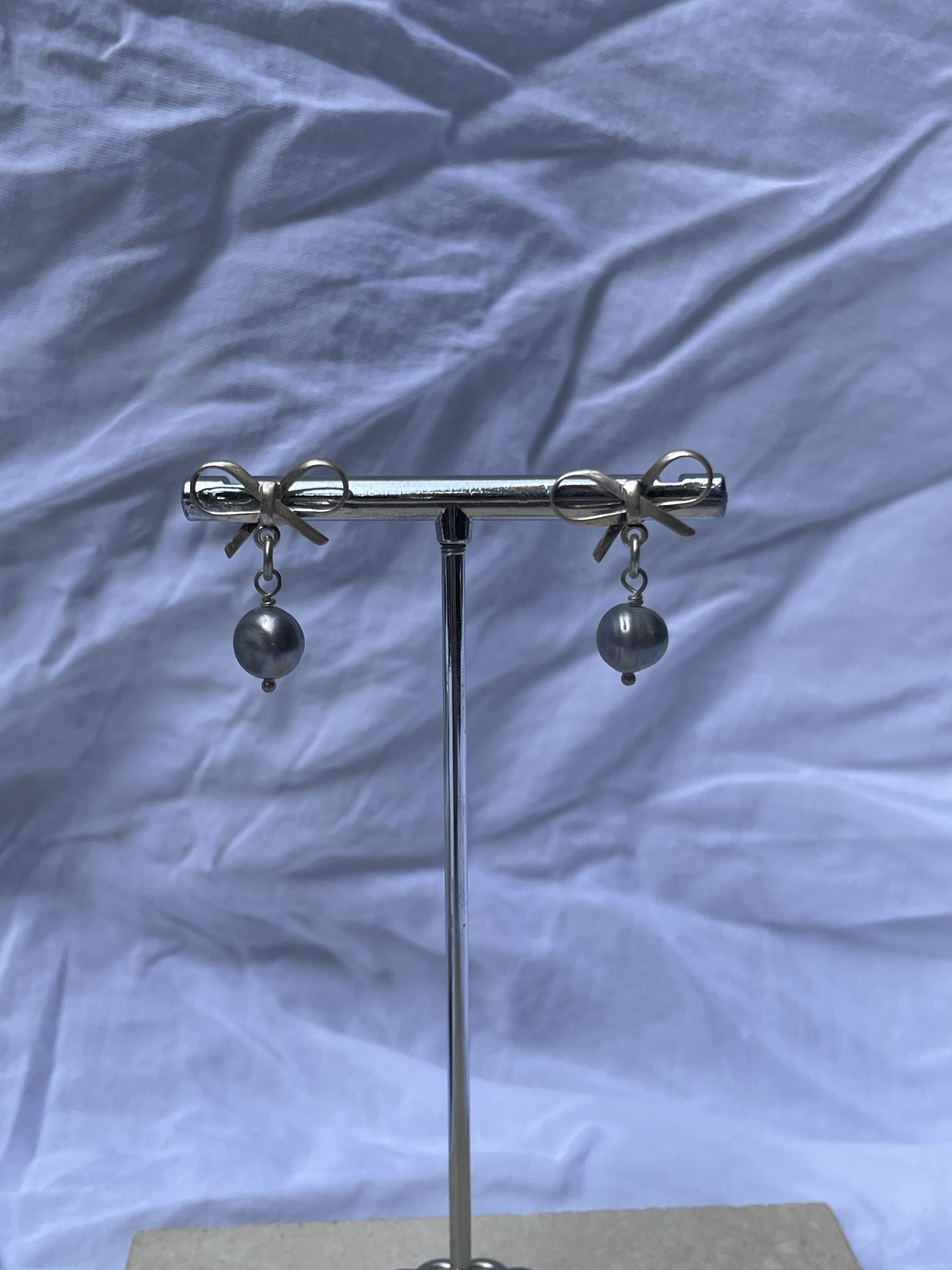עגילי פפיון צמודים ומהממים עם שילוב של פנינה אפורה 🦪