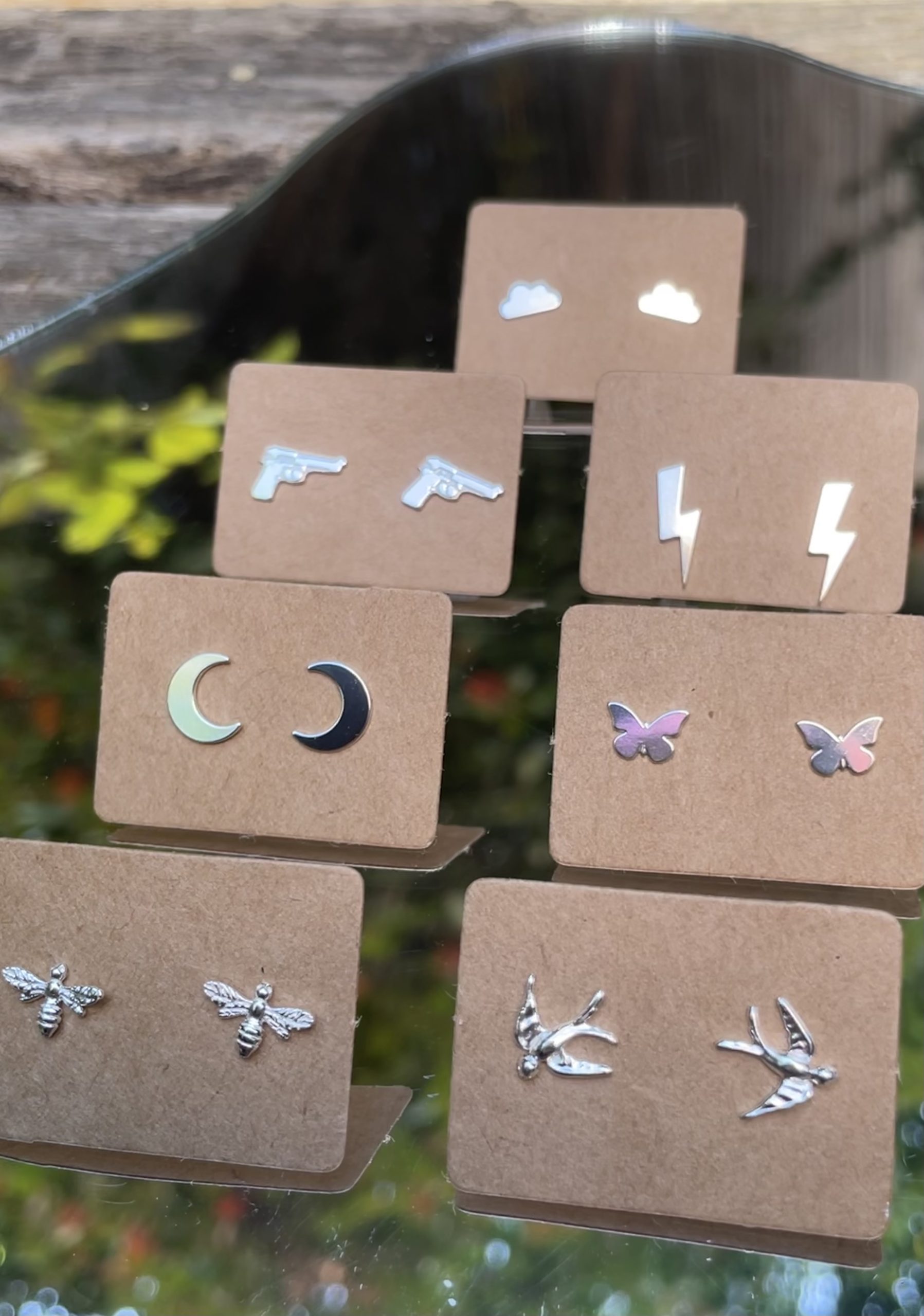 עגילי כסף צמודים בצורת פרפרים מתוקים