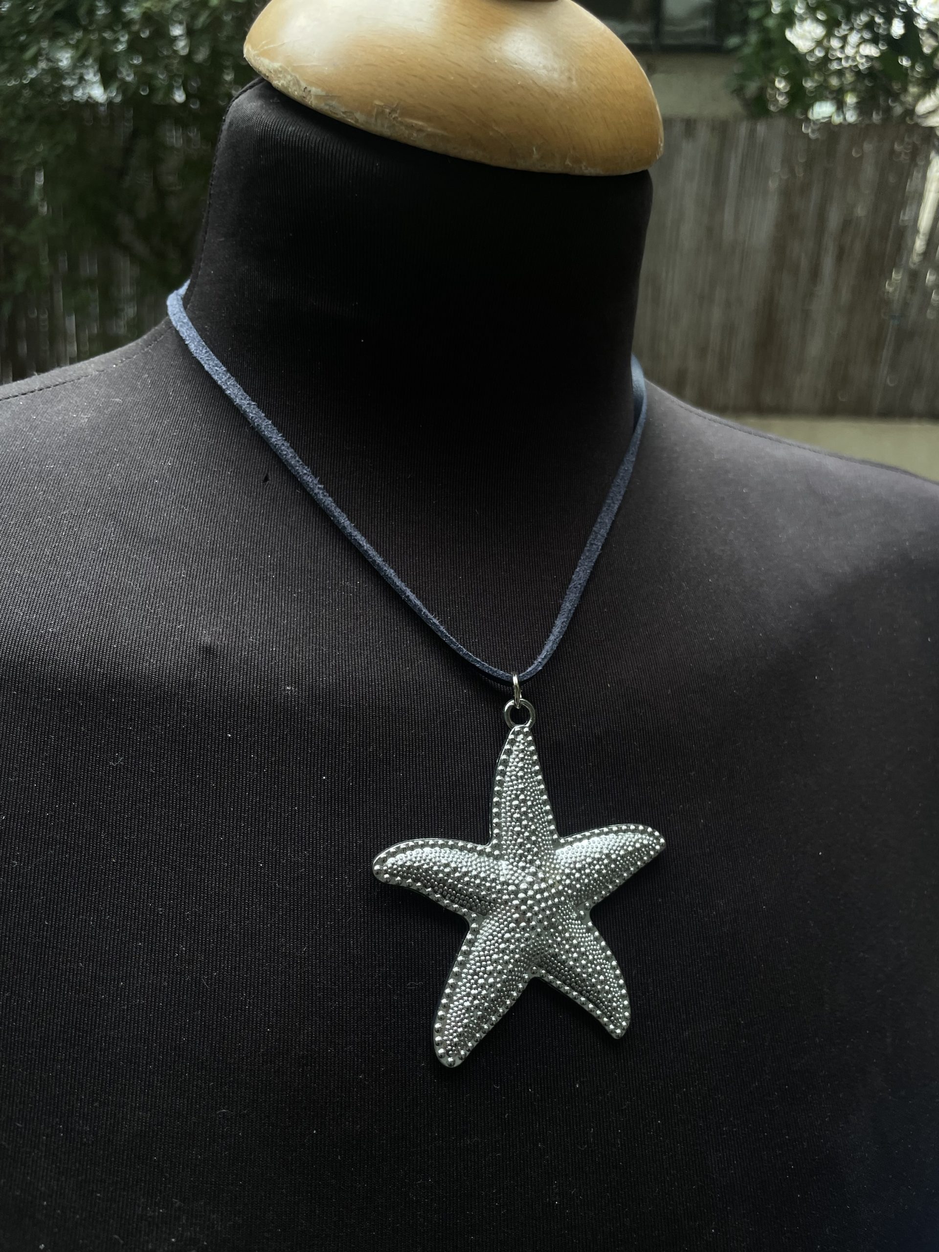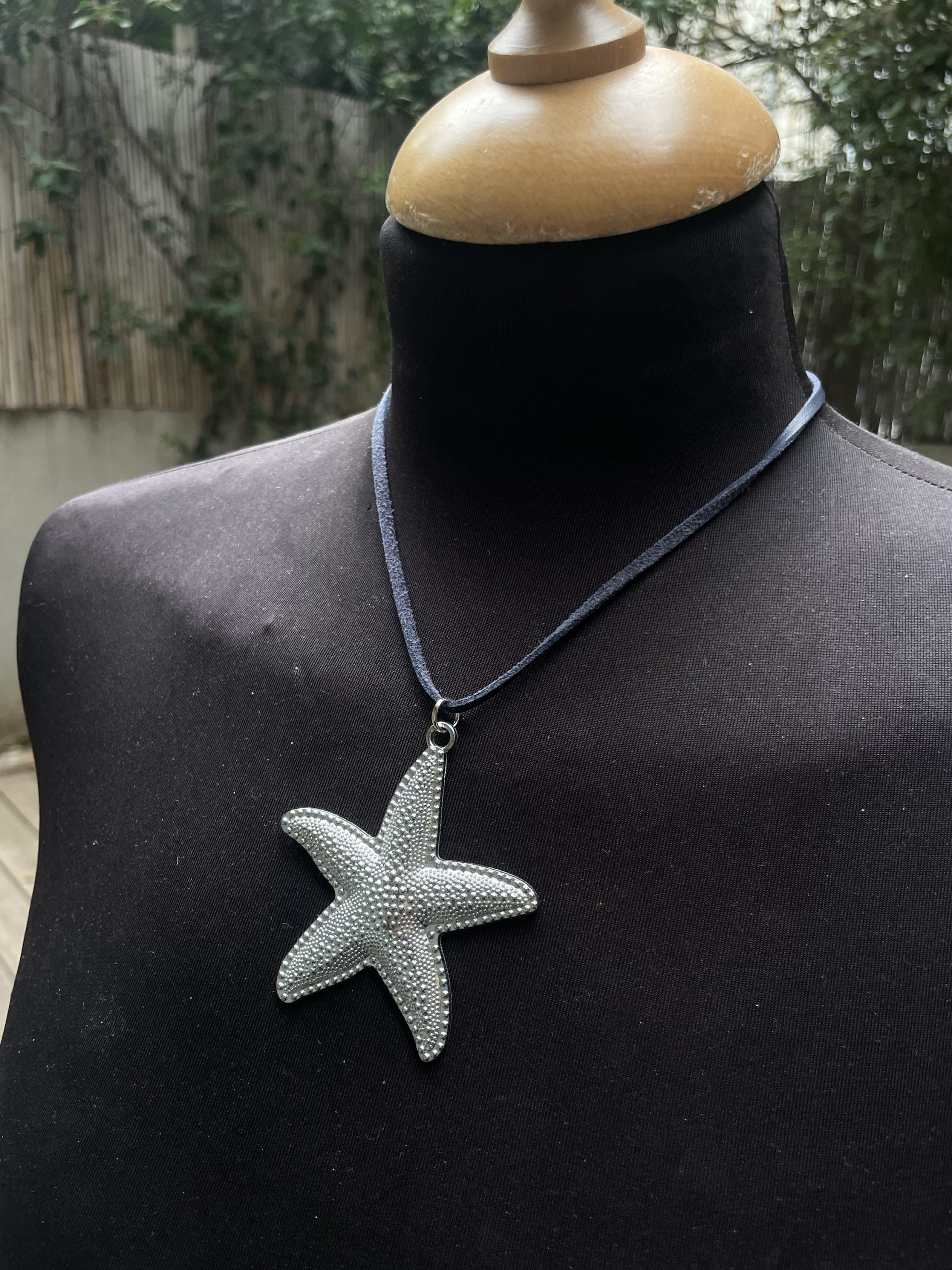 שרשרת חוט דמוי זמש עם תליון פרח גדול בציפוי כסף 3>