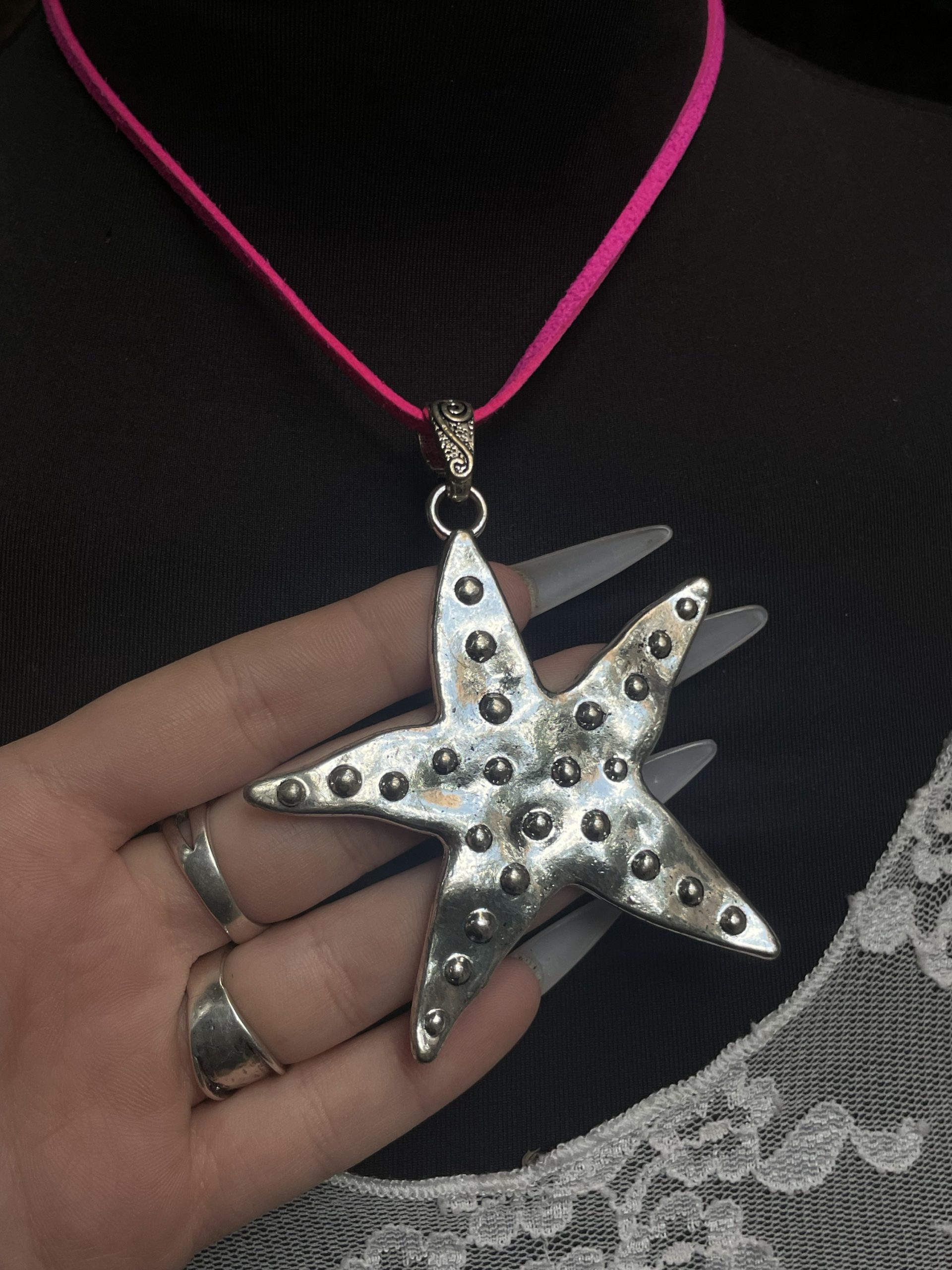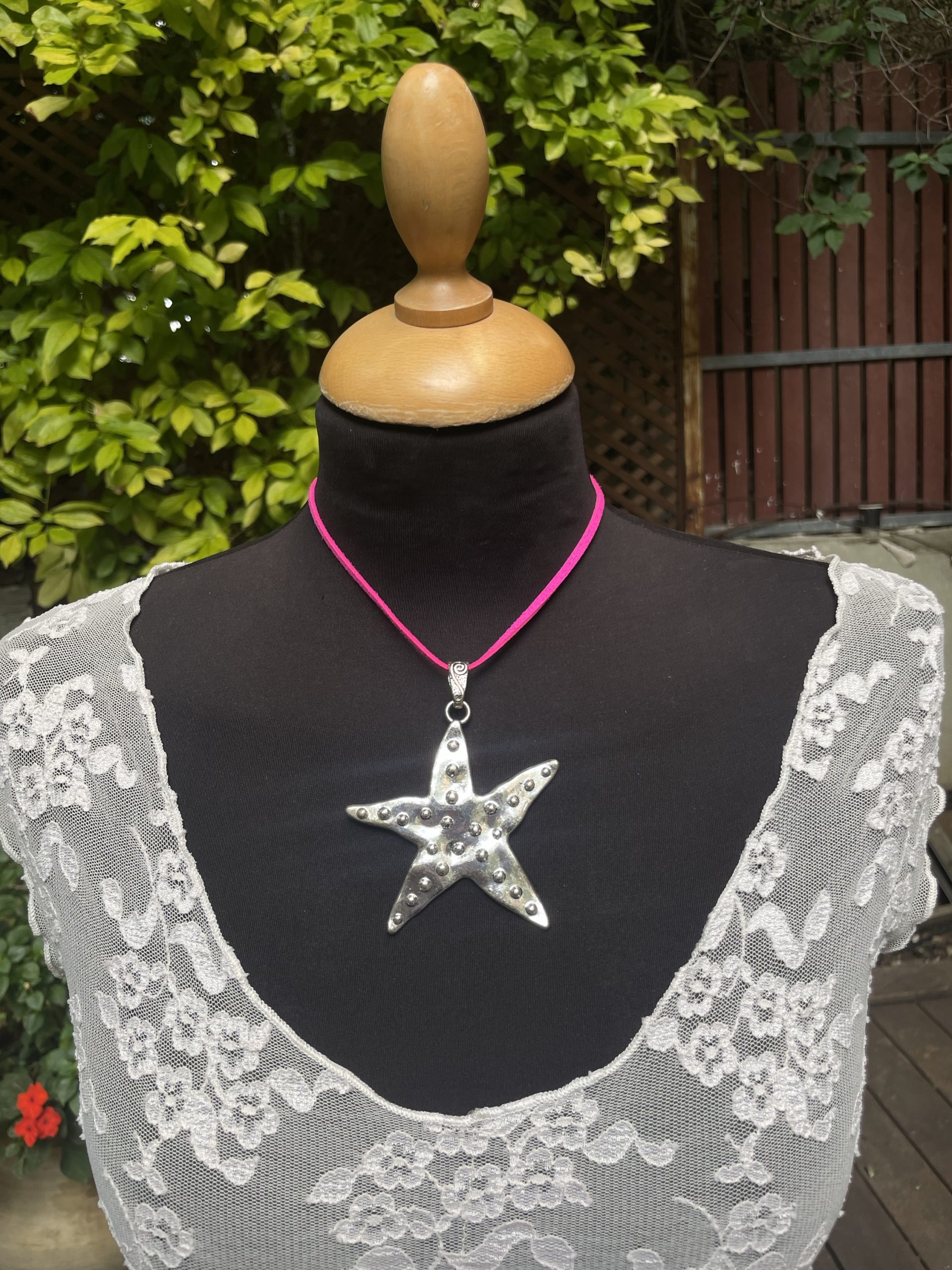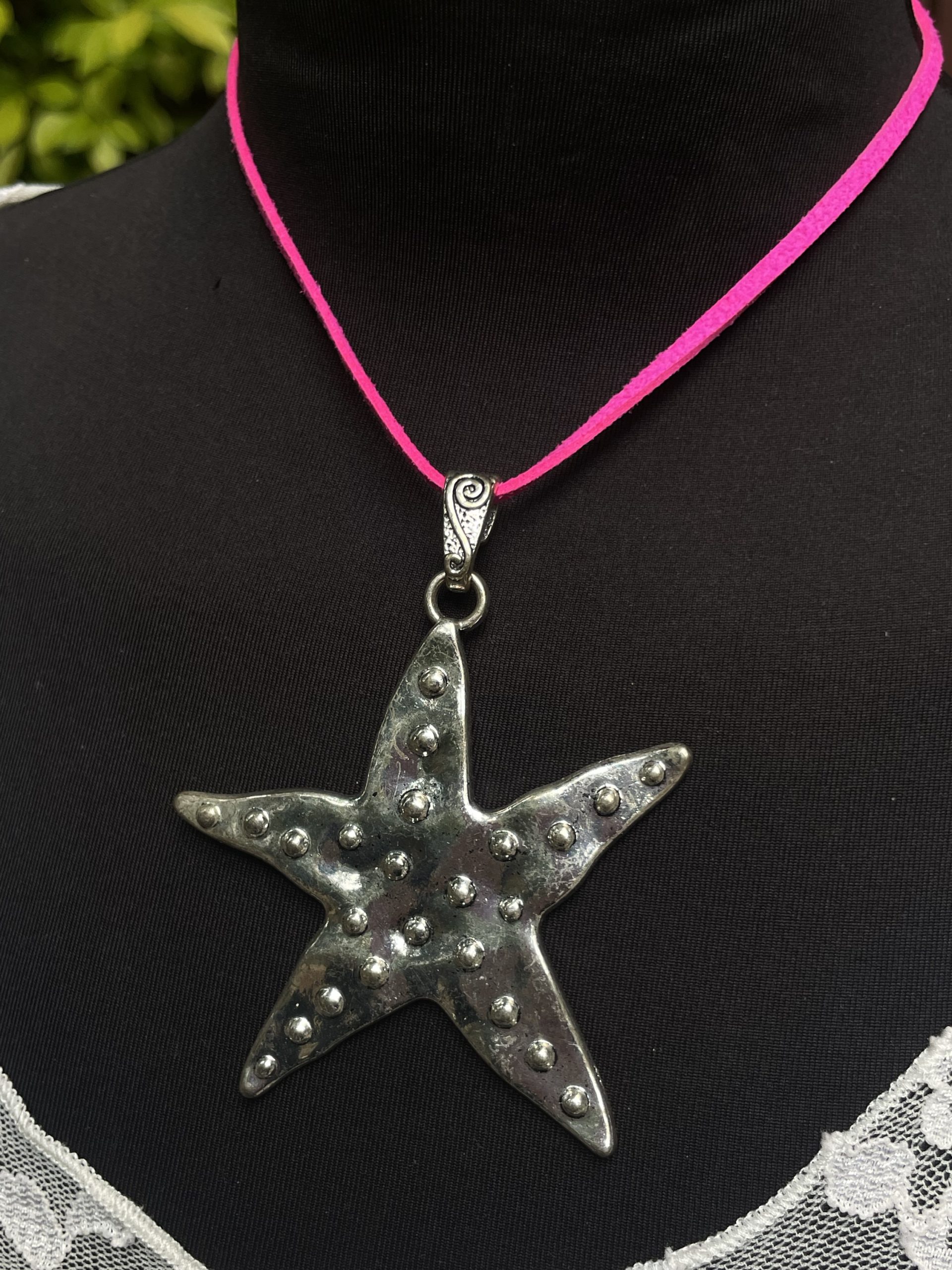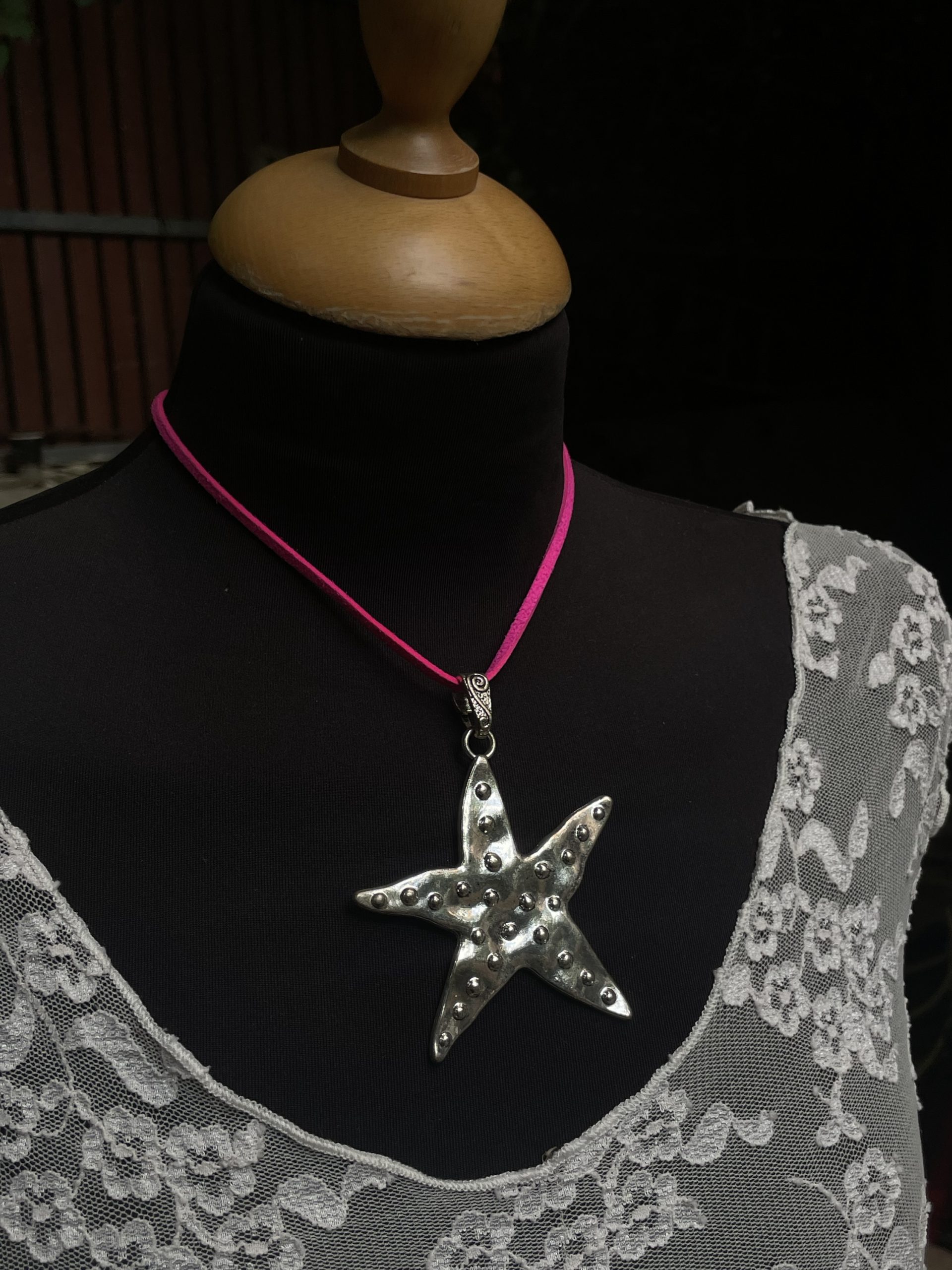 שרשרת חוט זמש עם תליון כוכב ים ענק