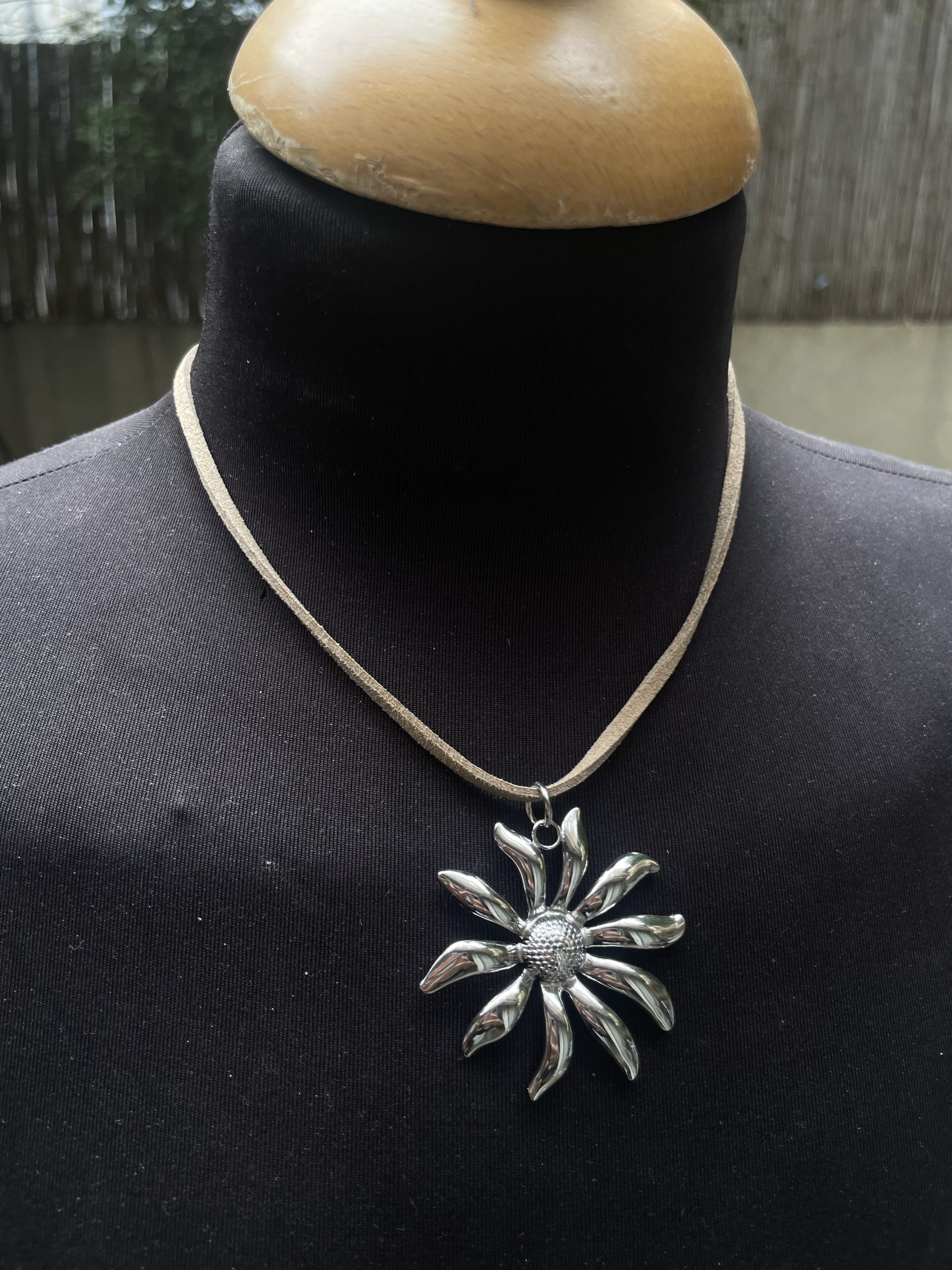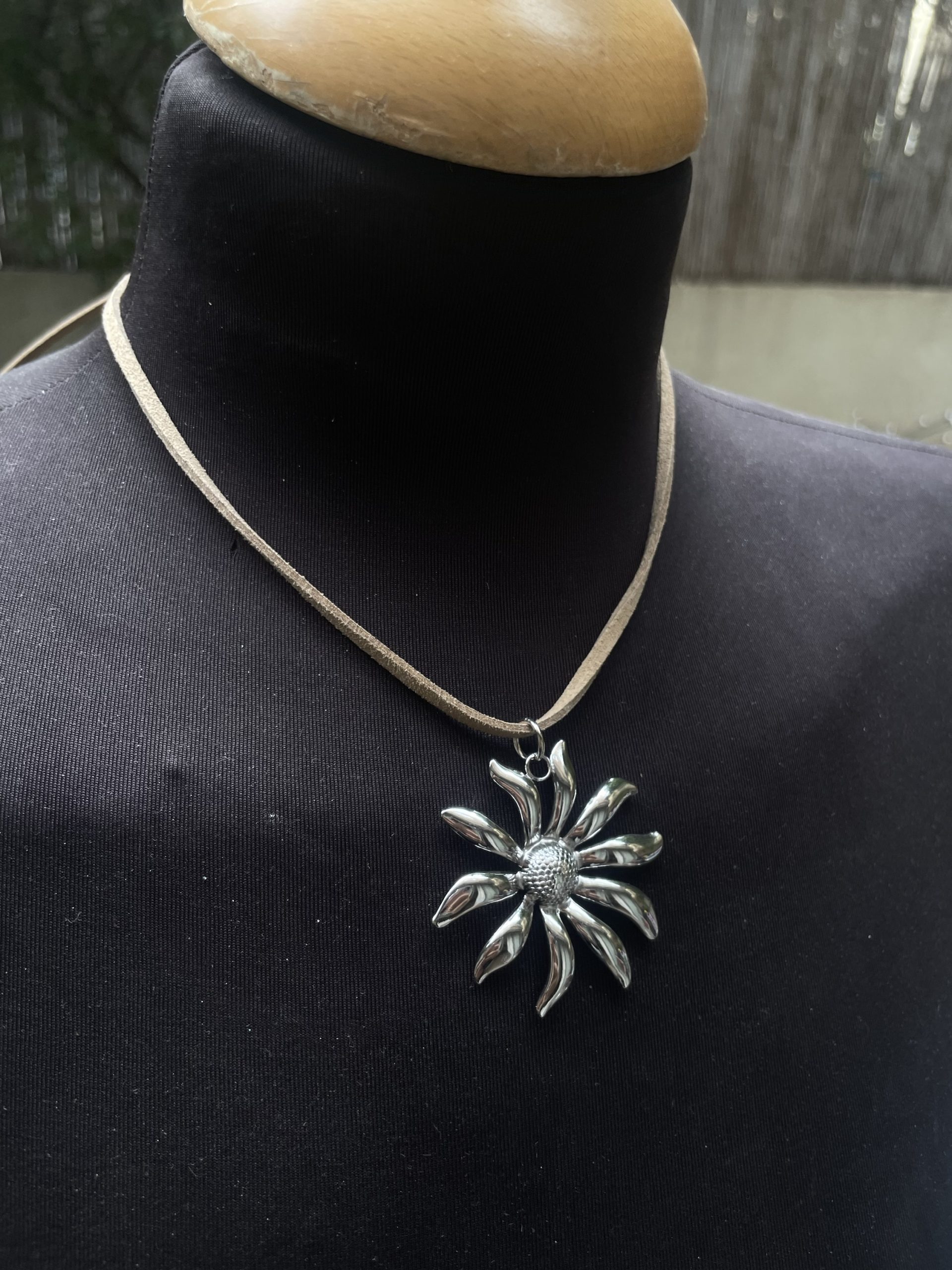 שרשרת חוט דמוי זמש עם תליון אמונייט גדול בציפוי כסף 3>