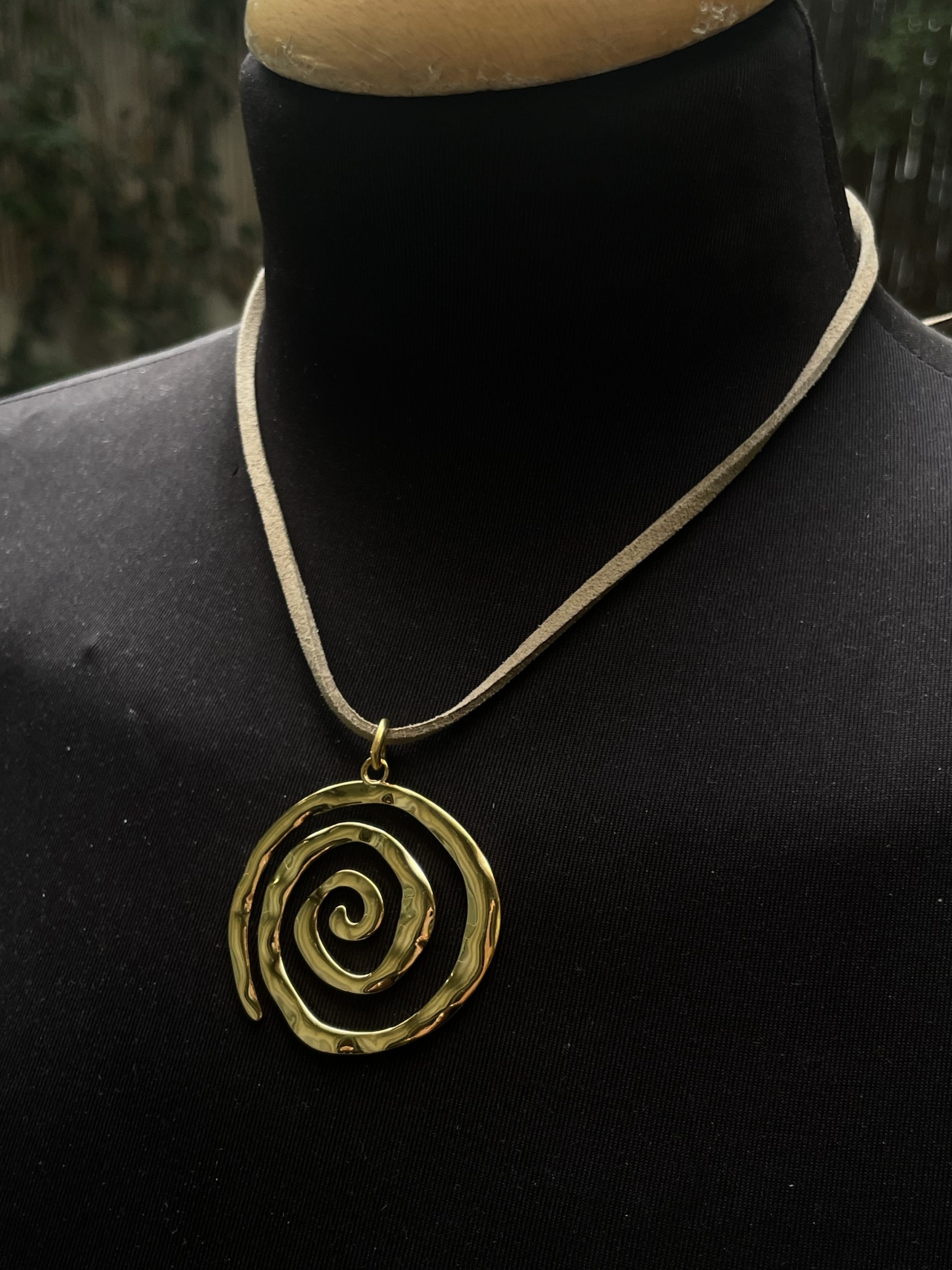 שרשרת חוט דמוי זמש עם תליון ספירלה גדול בציפוי זהב 3>