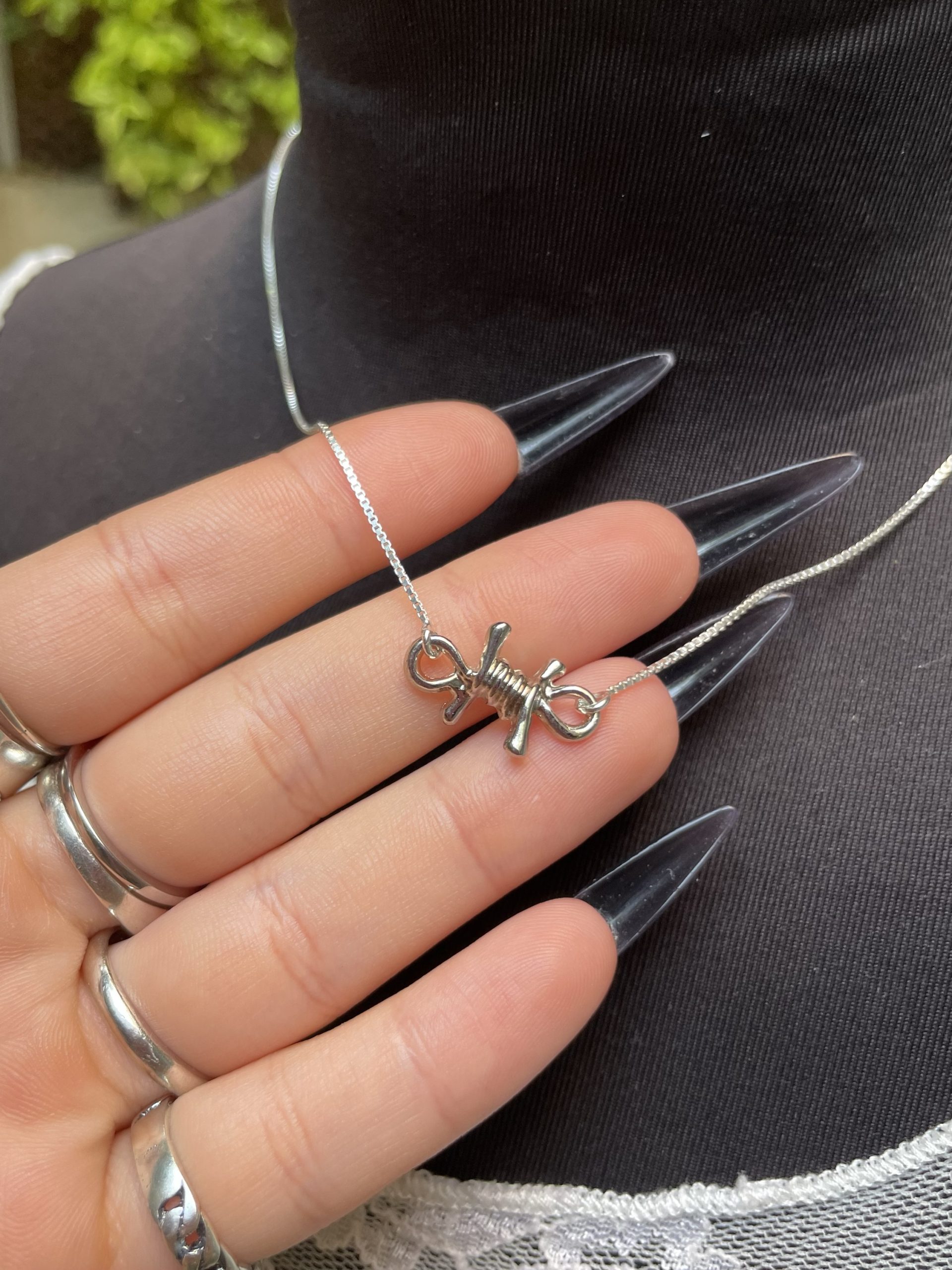שרשרת דקה עם תליון חוט תיל כסוף🖤