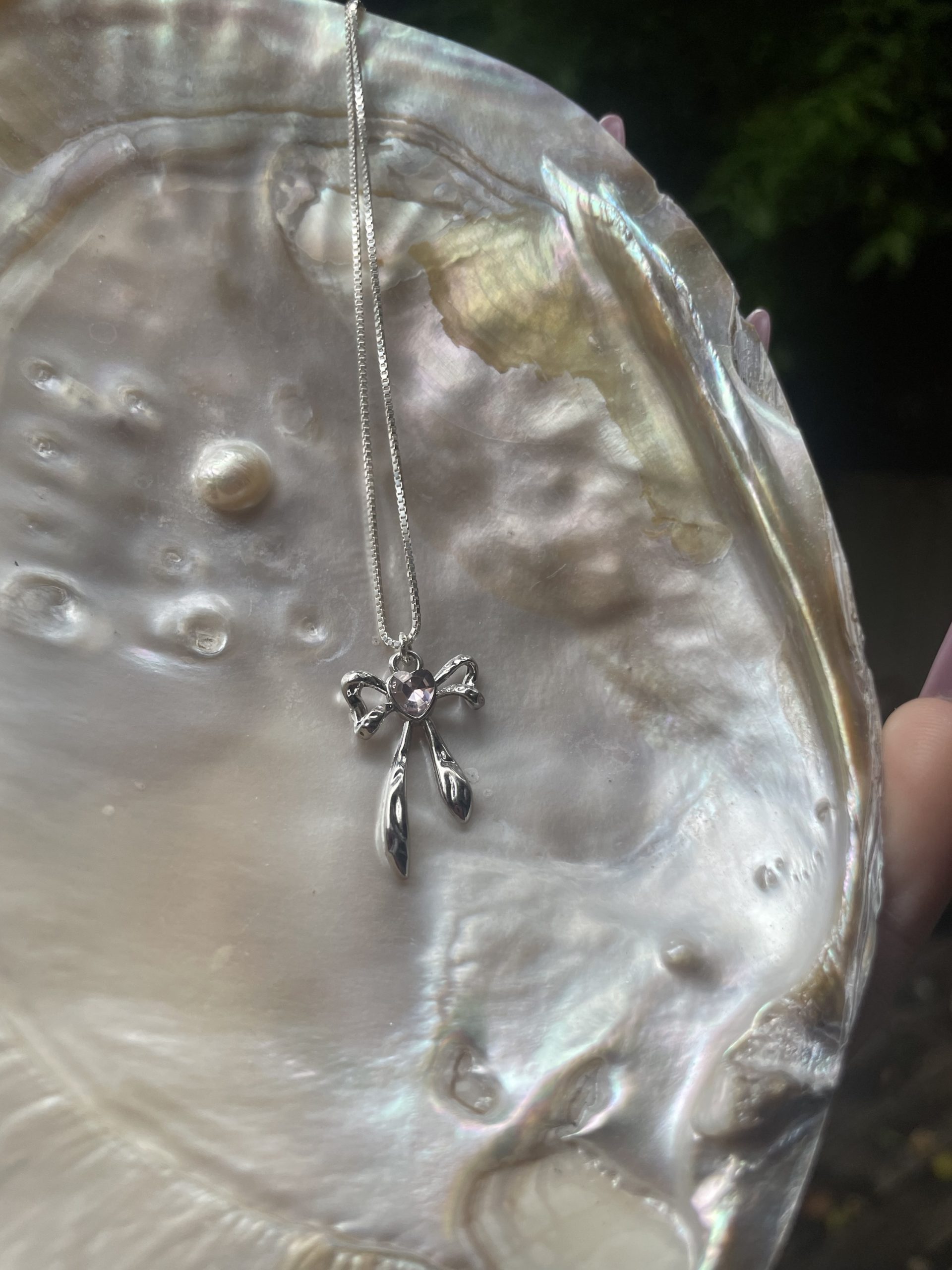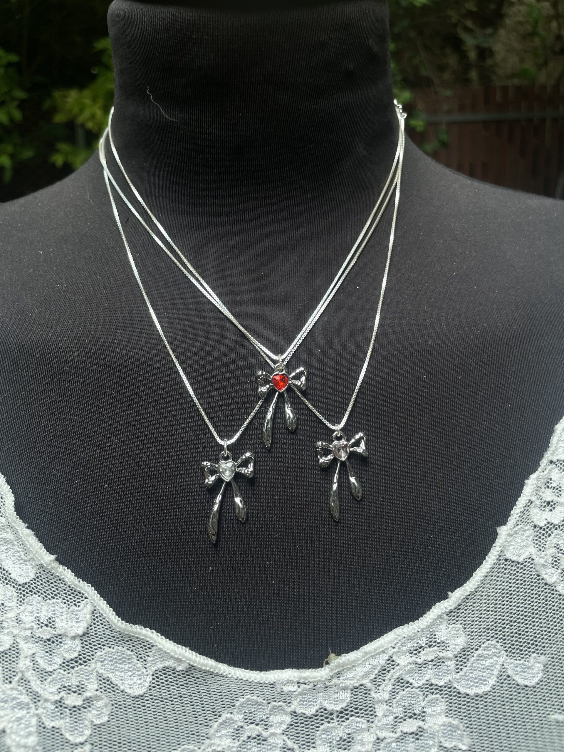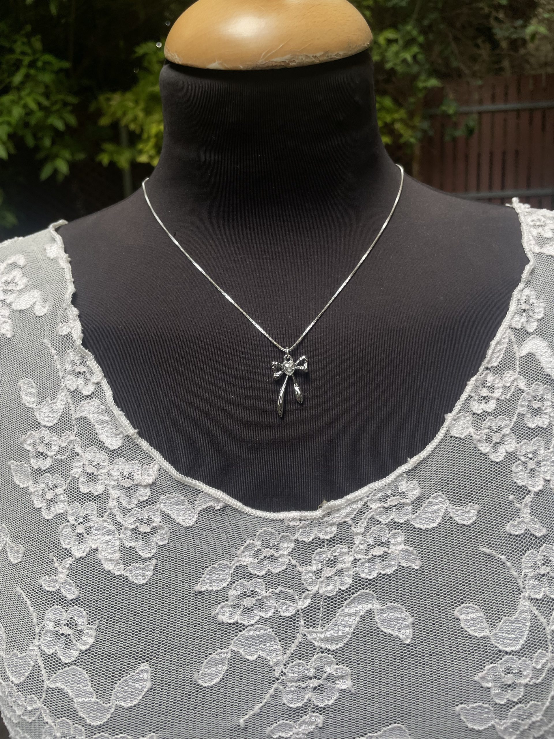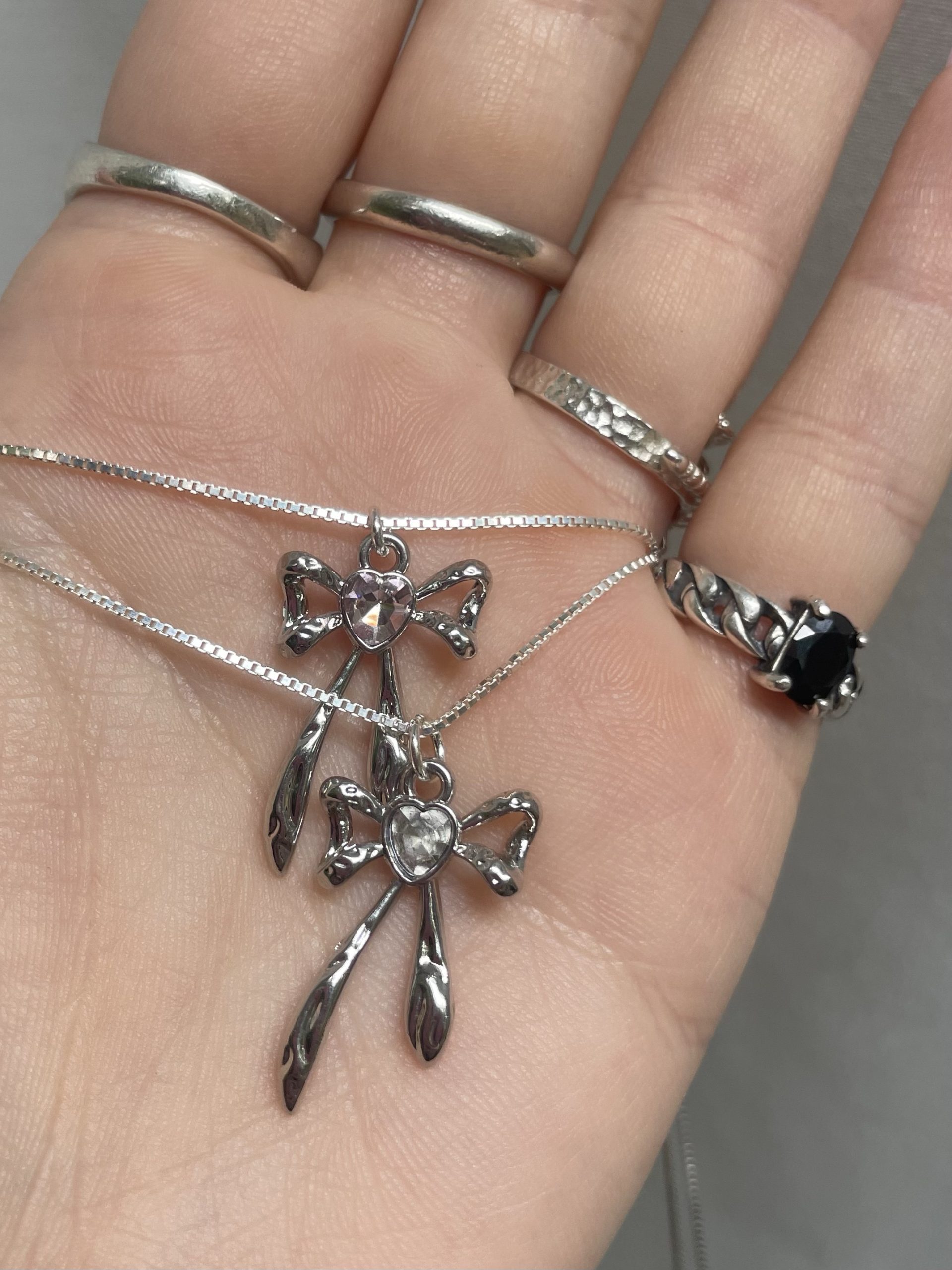 שרשרת מקסימה ועדינה💕 שרשרת דקה עם תליון פפיון כסוף עם שיבוץ של זירקון לב באמצעו⛓️