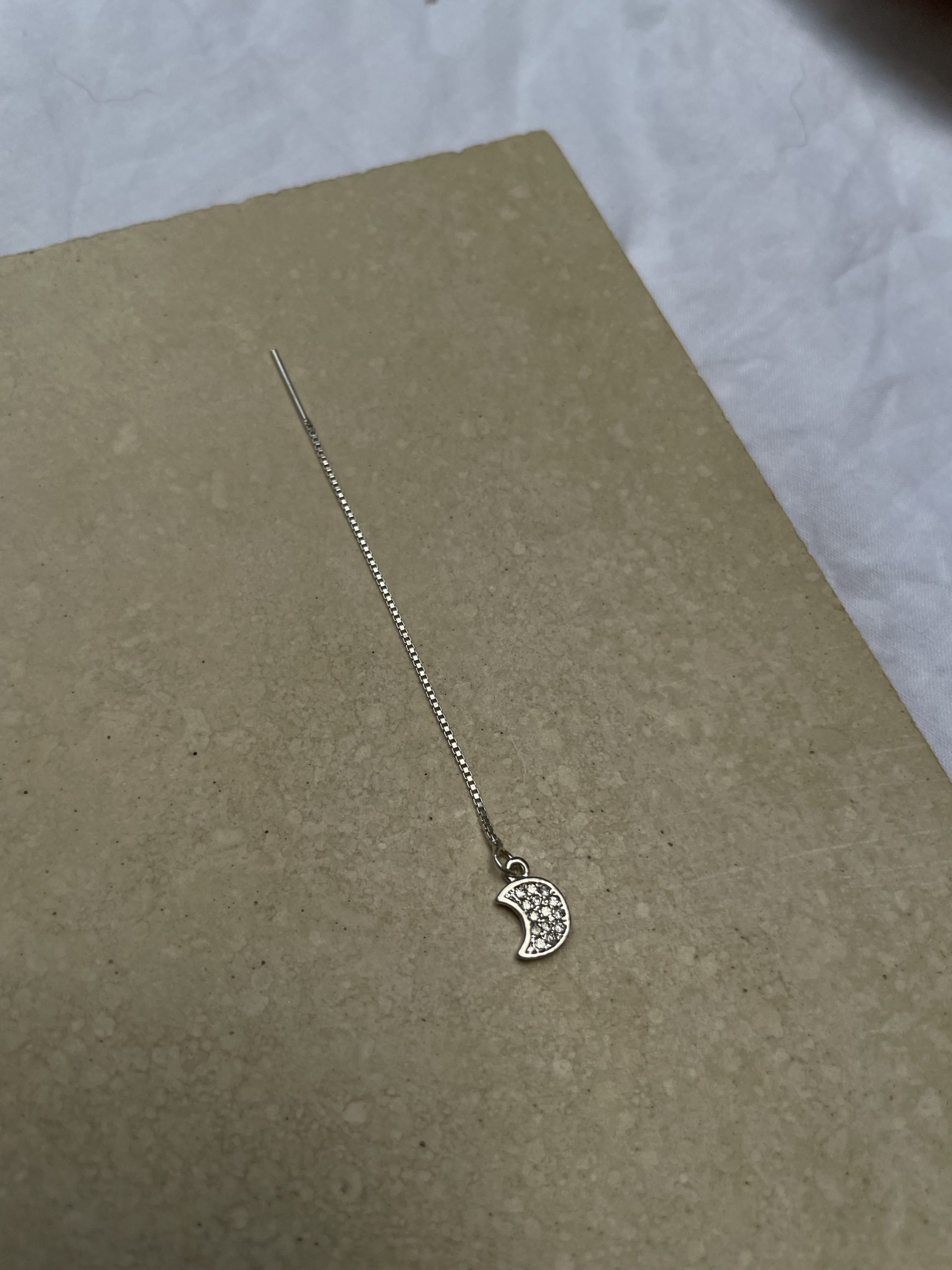עגיל שרוך מושחל עשוי שרשרת דקה עם תליון ירח משובץ זירקונים שקופים